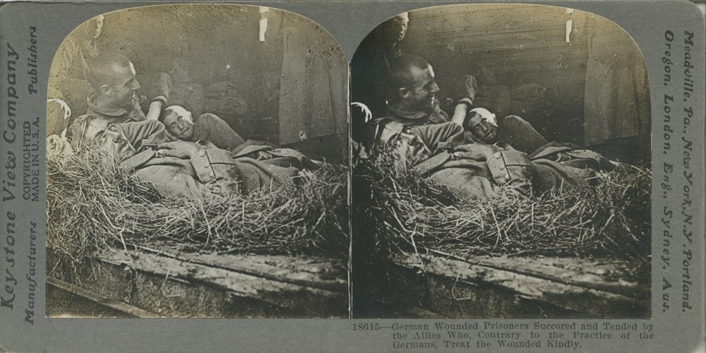 German Wounded Prisoners Succored and Tended by the Allies, Who, Contrary to the Practice of the Germans, Treat the Wounded Kindly
