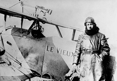 Georges Guynemer strikes a pose with his Nieuport fighter inscribed with the legend Le Vieux Charles, a reference to Sergeant Charles Bonnard, a squadron mate