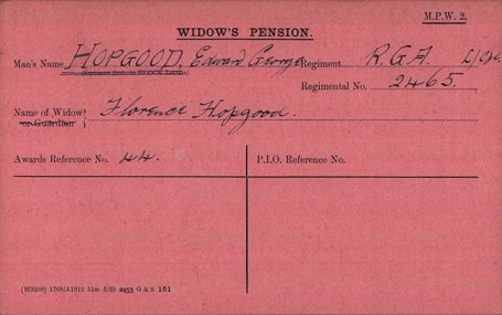 The following are the Pension Record Cards of three men from the RGA who were killed on this day: William Houston, Robert Spence and Edward Hopgood