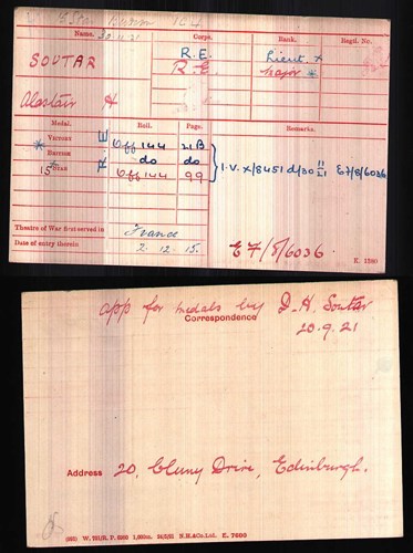 A slight complication now arose in that the Medal Index Card of this officer detailed his name as "Alastair H. Soutar".
