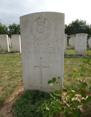 All this was of course not immediately obvious as we picked our way among the headstones. What was striking was the surprising discovery of an orderly from the Friends Ambulance Unit and a sole Canadian officer who was with the RAF. However, what really caught our eye was the headstone dedicated to an unknown Major, Royal Engineers 'Known Unto God'. Obviously this officer had been partly identified when buried here, but was there any way his unit could be identified? There were no other Royal Engineer burials that we could see in the cemetery and soldiers in adjacent graves were generally also 'unknown'.