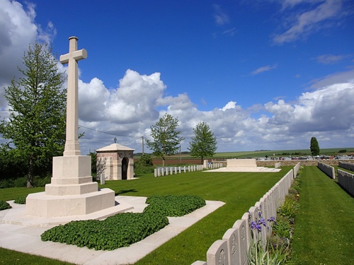 Crosbee was lucky; he managed to return safely to his airfield, although this did not stop von Richthofen claiming a victory. Slightly less fortunate was Crosbee’s observer Serjeant John Prance who was wounded. This was not the end of von Richthofen’s activities that day, as within four hours, he had claimed his twenty-third victim, a Sopwith 1½ Strutter crewed by 2/Lt Herbert Green and 2/Lt Alexander Reid. Both of these officers were killed and are now buried at Cabaret-Rouge British Cemetery. They lay side by side in graves XII.E.3 and XII.E.4.