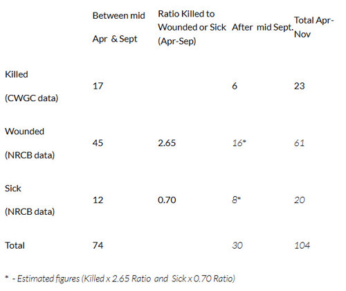 It is however possible to make a crude estimate of the unrecorded casualties by using the Commonwealth War Graves Commission details of those who lost their lives.